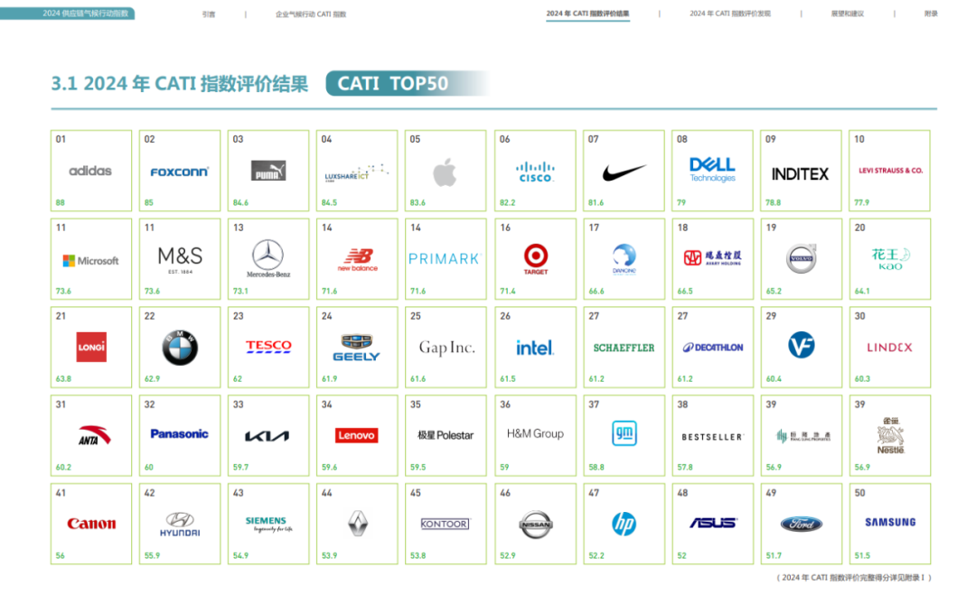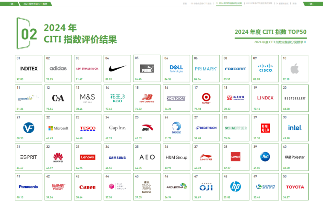 2024年,IPE全面升級CITI指數(shù)和CATI指數(shù)。升級后的CITI指數(shù)重點關(guān)注供應(yīng)鏈合作,從管理機制、合規(guī)與整改、資源消耗與污染物排放、能源使用與應(yīng)對氣候變化、利益方綠色選擇五個維度對企業(yè)的綠色供應(yīng)鏈管理開展量化評價;CATI指數(shù)重點完善產(chǎn)品碳足跡披露和價值鏈減排相關(guān)指標,從治理機制、測算披露、碳目標設(shè)定、碳目標績效和減排行動五個維度對企業(yè)在氣候治理方面的行動開展動態(tài)評價。